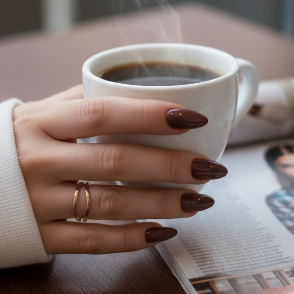 Grâce à leur finition lisse et brillante, les press on nails Marron Glacé subliment les mains avec douceur et modernité. Ce set se porte facilement au quotidien et apporte une touche de sophistication minimaliste.